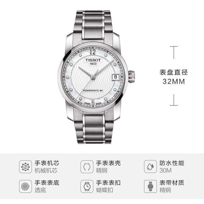 天梭瑞士自动机械机芯女士腕表