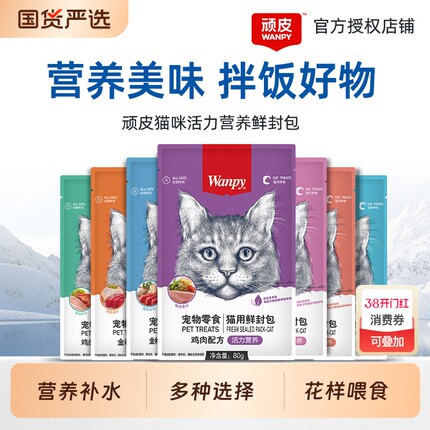 顽皮猫零食鲜封包wanpy猫罐头非主食罐湿粮包猫咪零食金枪鱼鸡肉
