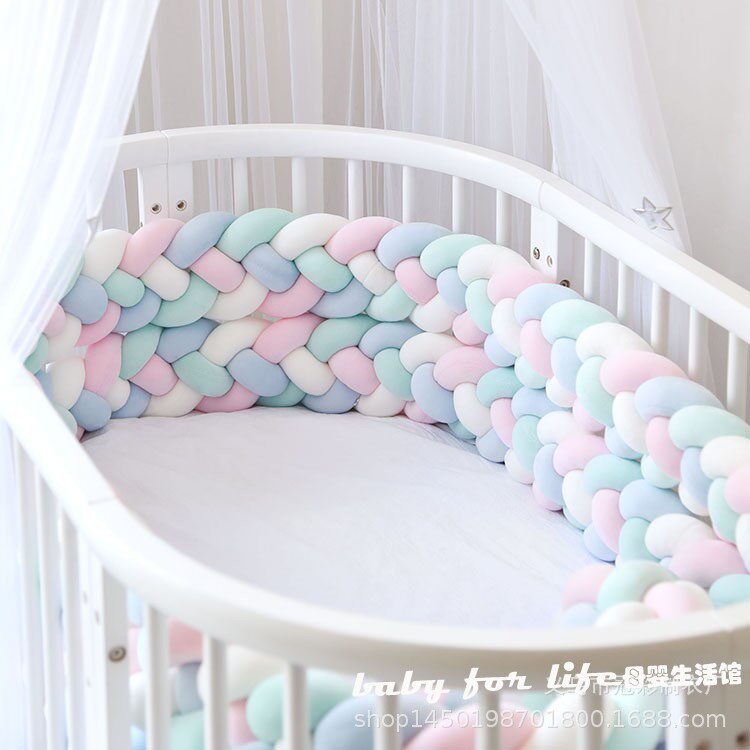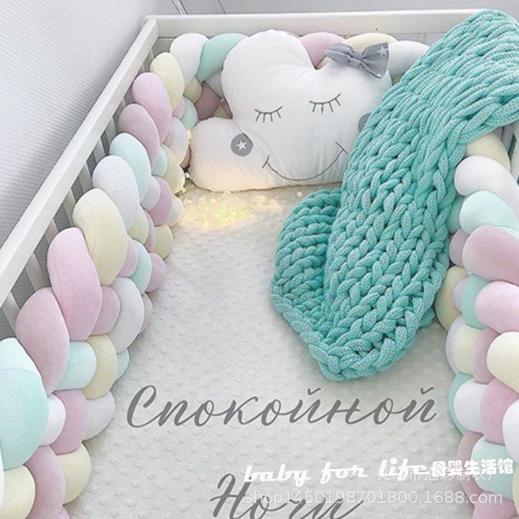 ins风四股麻花编织床围长条打结绳儿童房防撞护栏U婴儿床抱枕靠垫