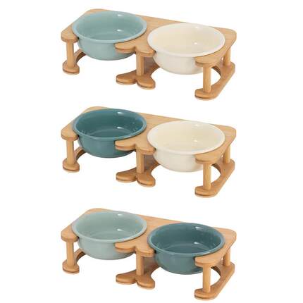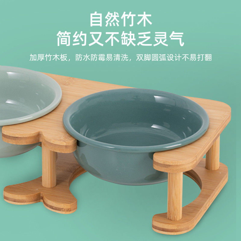 陶瓷狗碗中小型犬狗食盆防打翻柯基柴犬双碗保护颈椎水碗木架猫碗