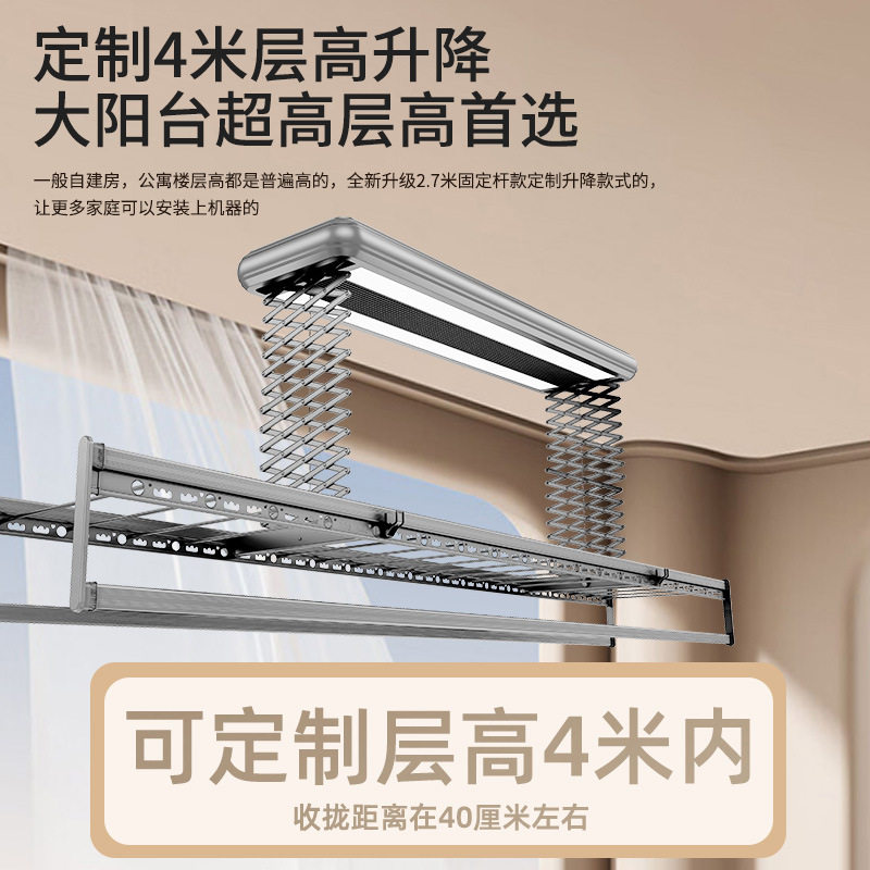 超高层高2.7米电动晾衣架阳台智能遥控升降晾衣机加长固定晾衣杆
