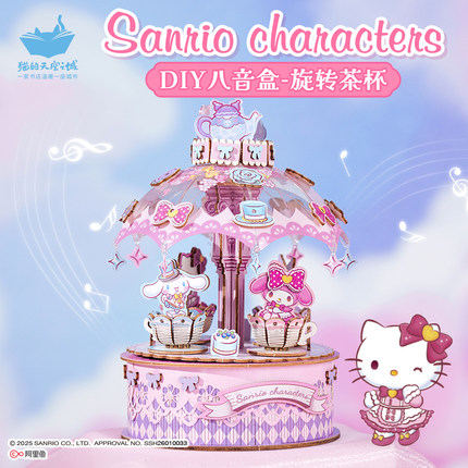 猫的天空之城三丽鸥八音盒手工diy可旋转茶杯音乐盒拼装生日礼物