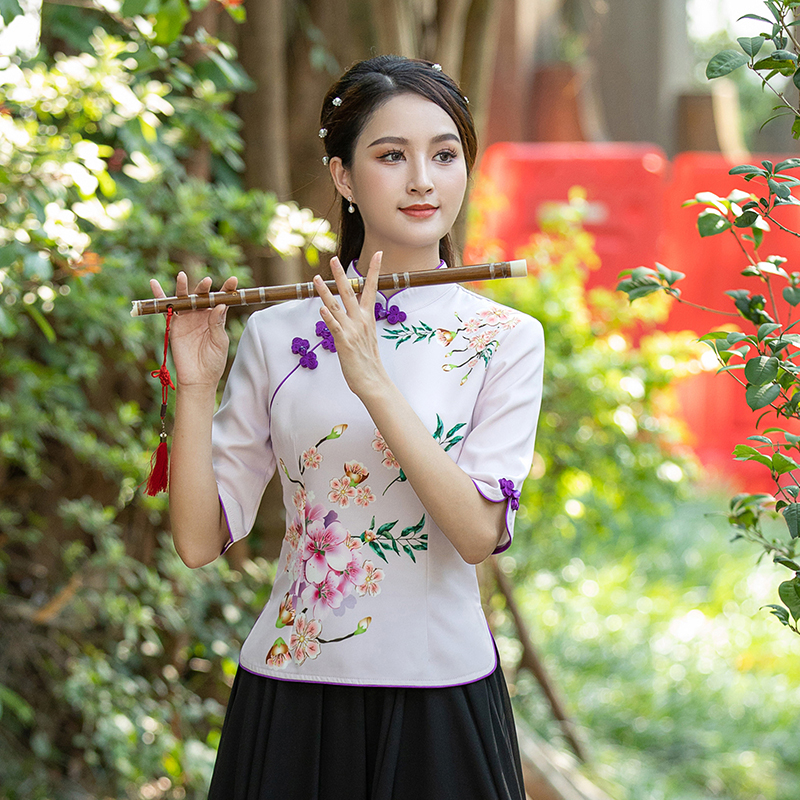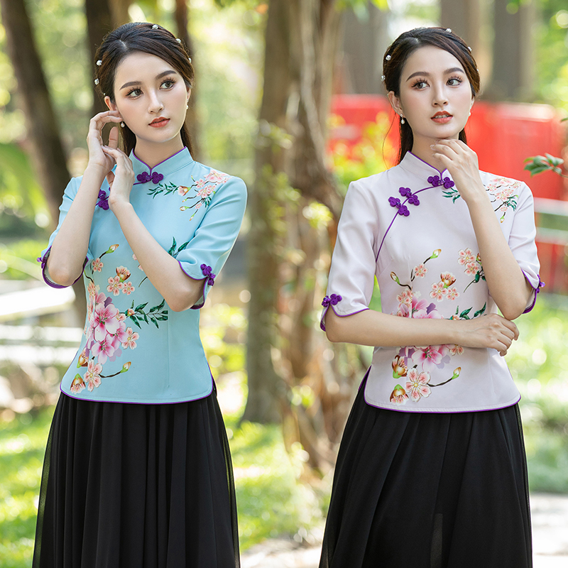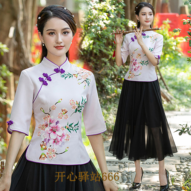 春夏改良旗袍套装上衣中式大码妈妈唐装汉服七分袖修身时尚女装