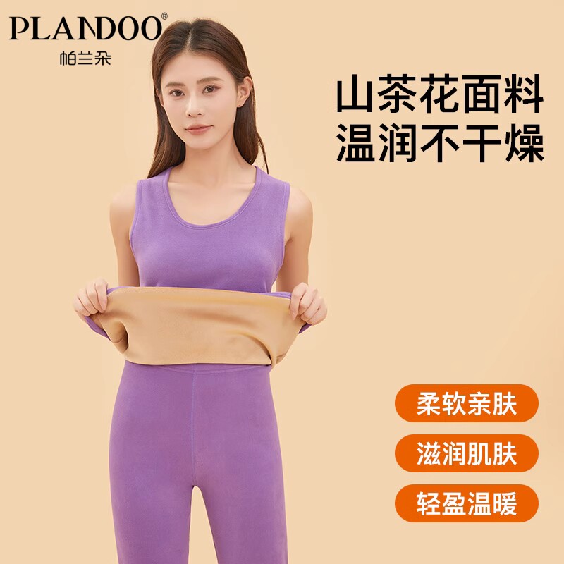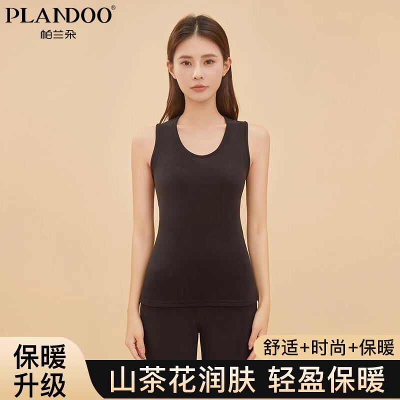 帕兰朵女秋冬山茶油背心保暖打底内穿舒适纯色加绒加厚防寒上衣