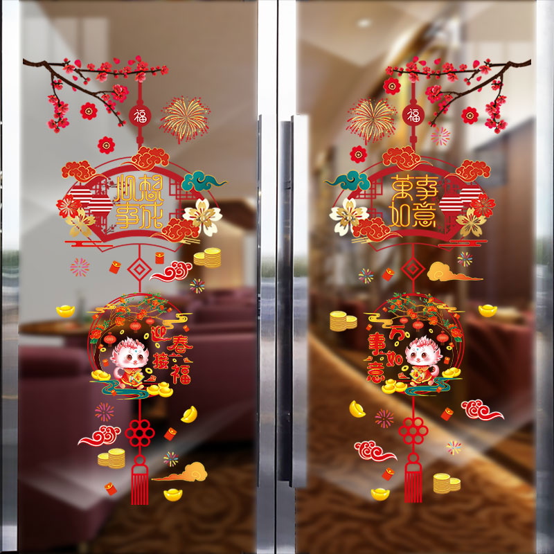 龙年春节贴纸商场活动布置玻璃橱窗2024新年装饰新春贺岁福字贴纸