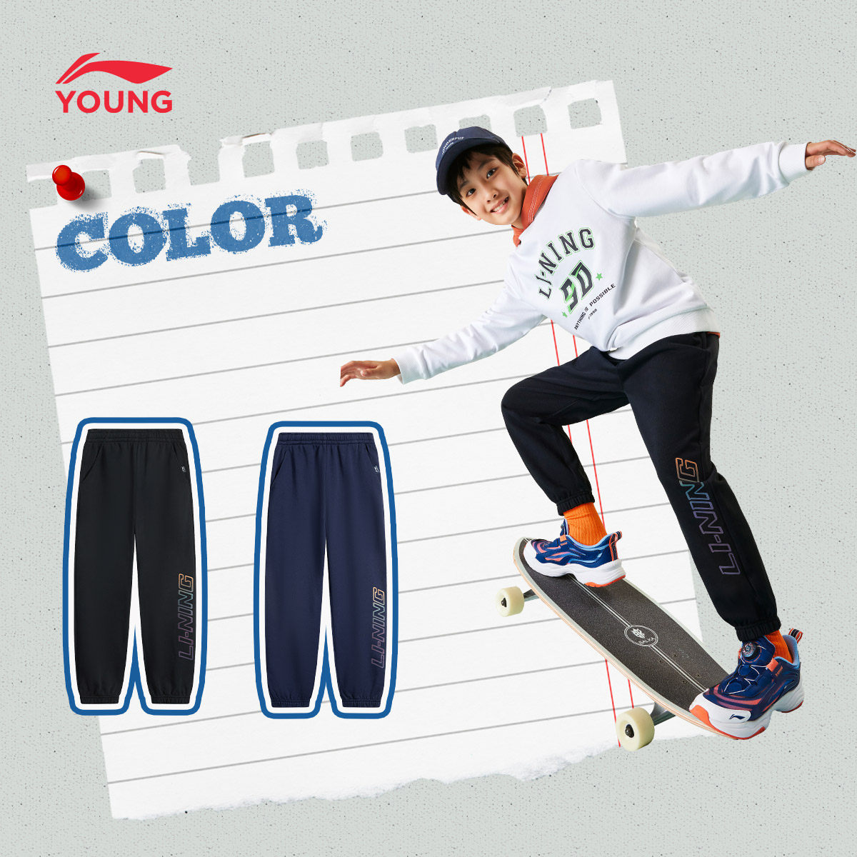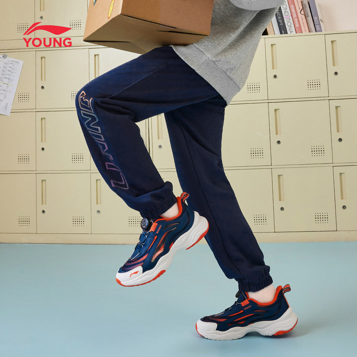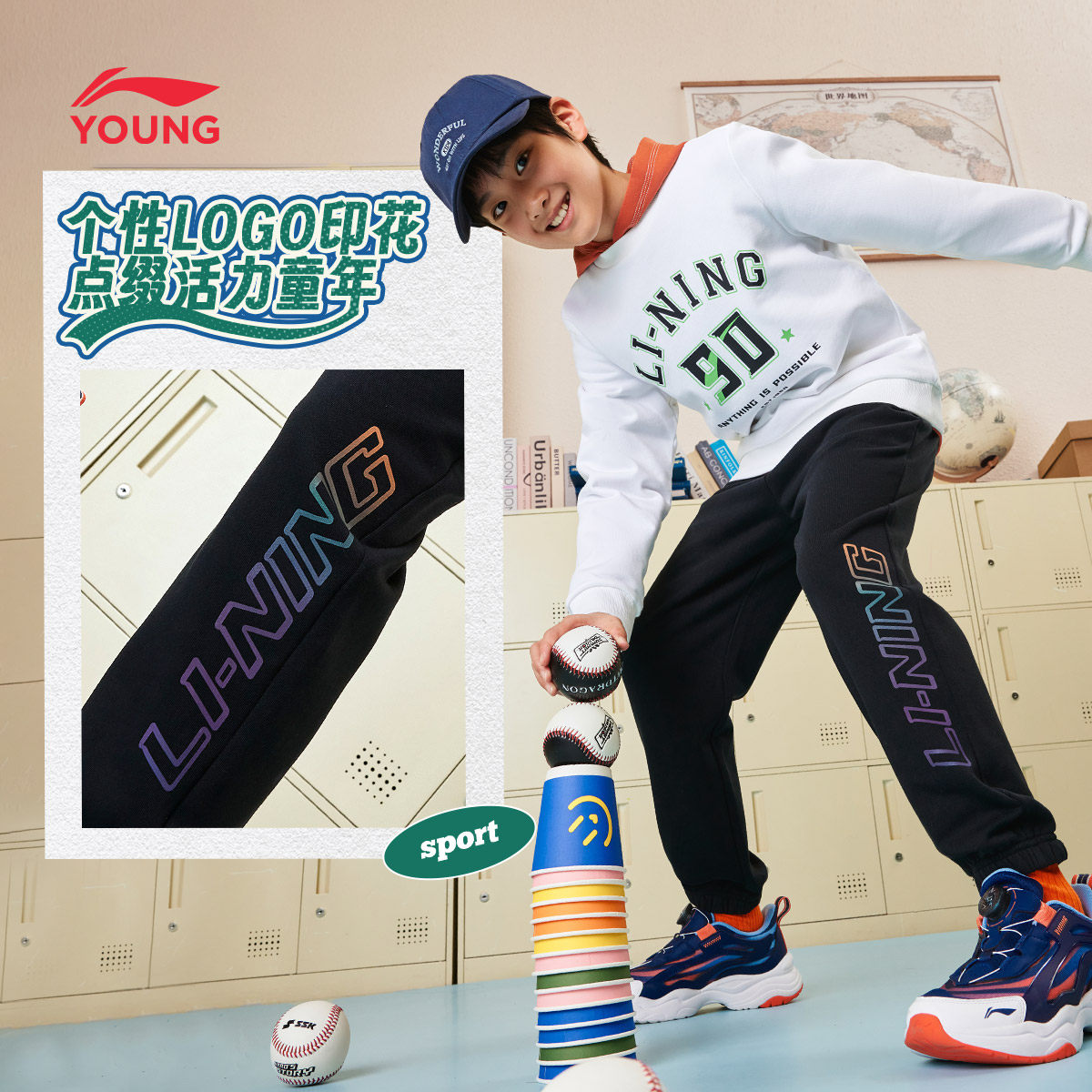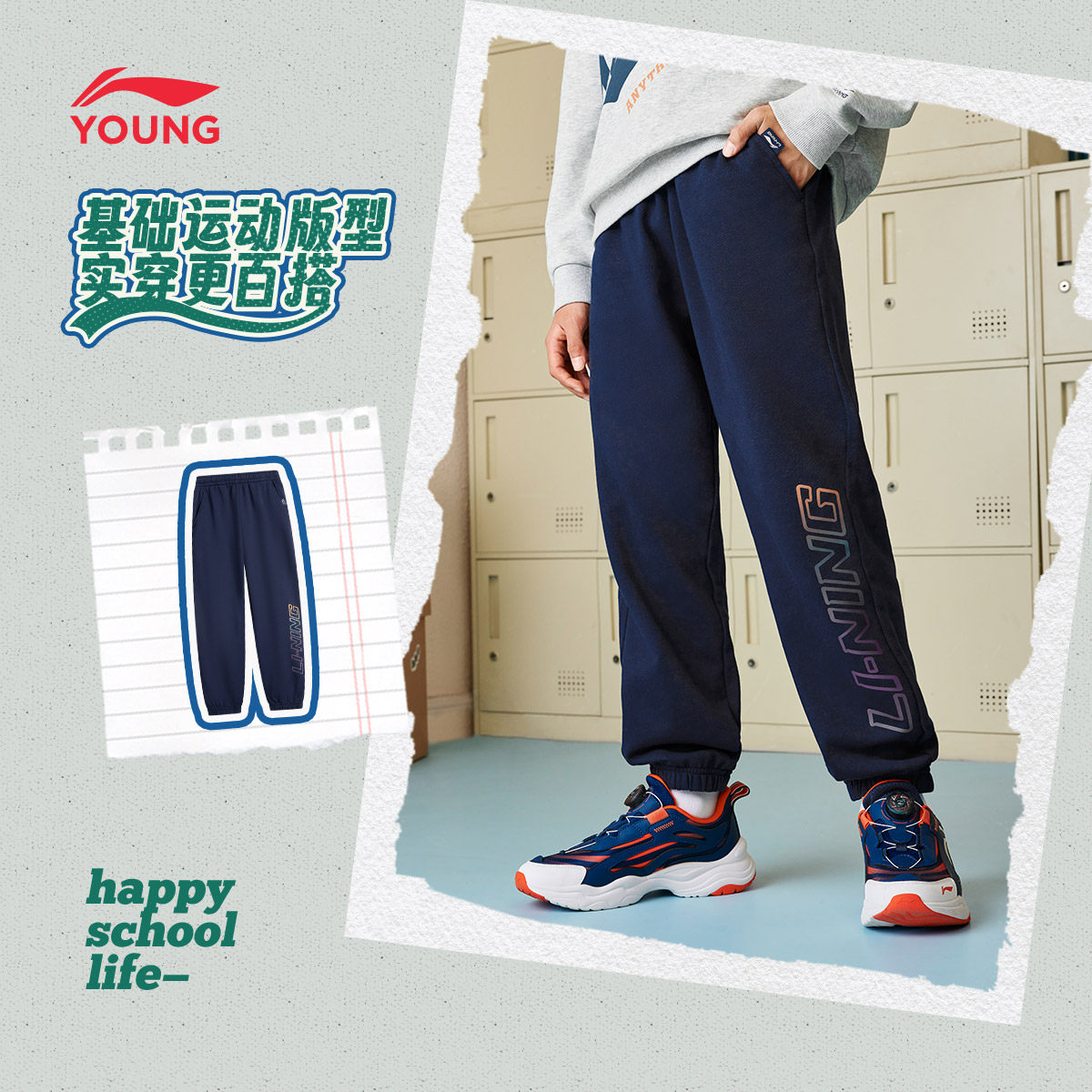 李宁童装卫裤男女小大童运动生活系列长裤春季休闲束脚针织童装
