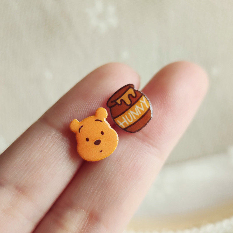 迪士尼趣味卡通耳夹无耳洞可爱小熊维尼不对称耳钉女银针软妹闺蜜