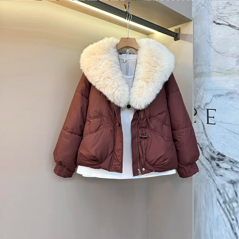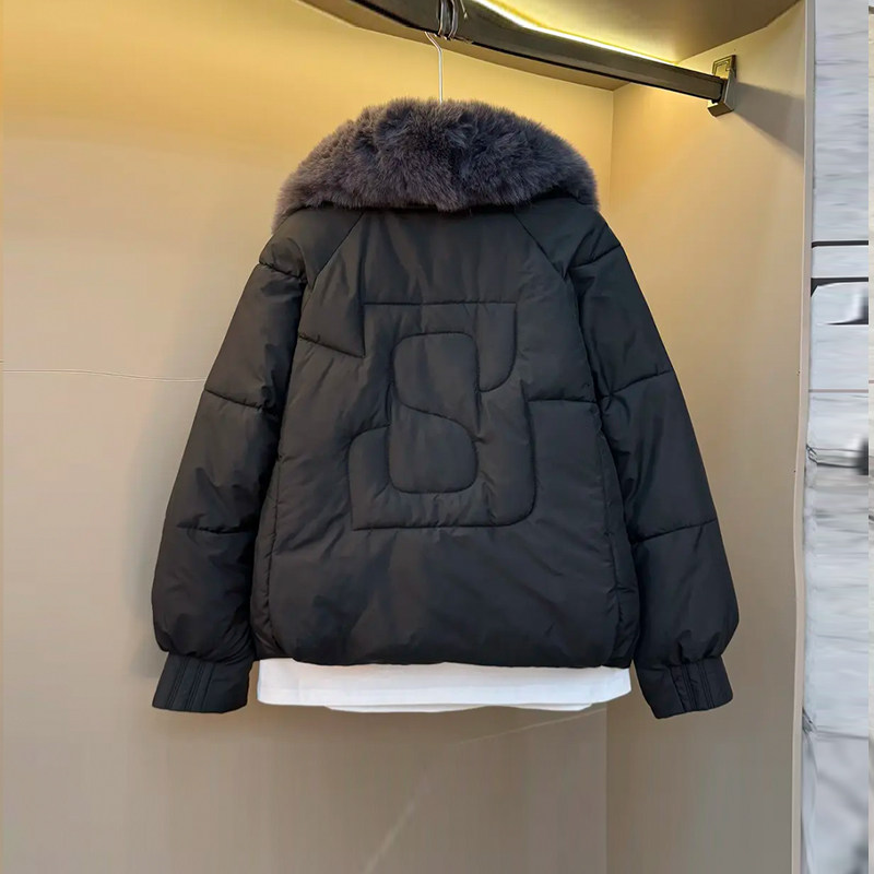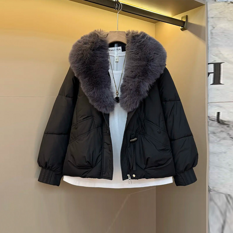 加大码女装大毛领长袖棉服胖妹妹欧洲站2025冬季款洋气宽松棉外套