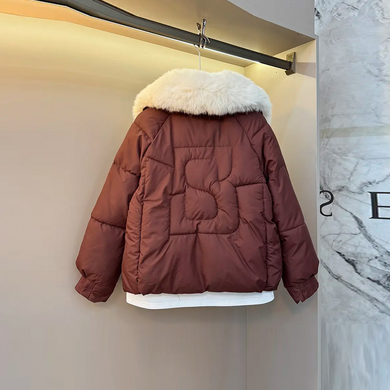 加大码女装大毛领长袖棉服