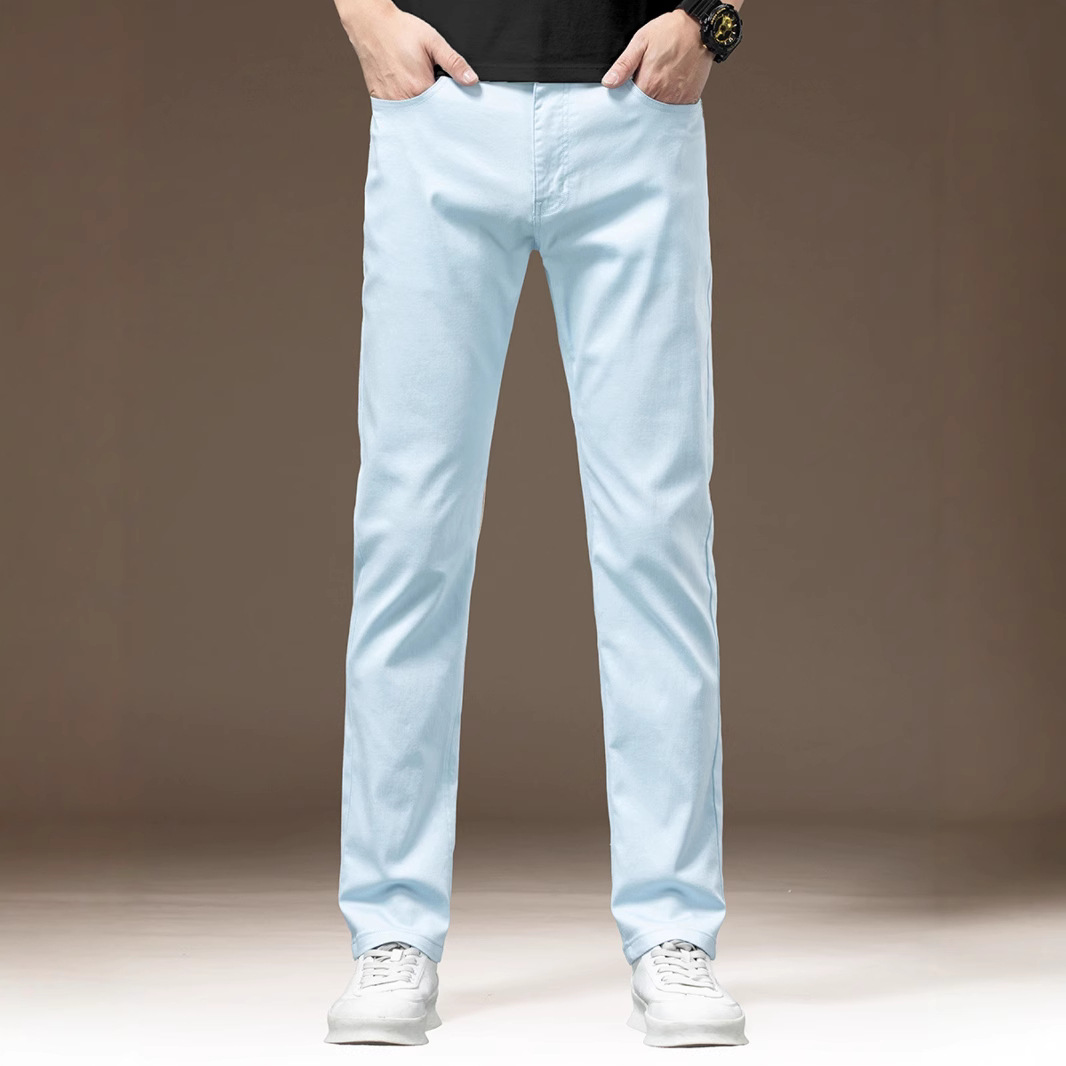 高端天丝莱赛尔舒适牛仔裤男2025春季新款浅色直筒百搭弹力裤子男