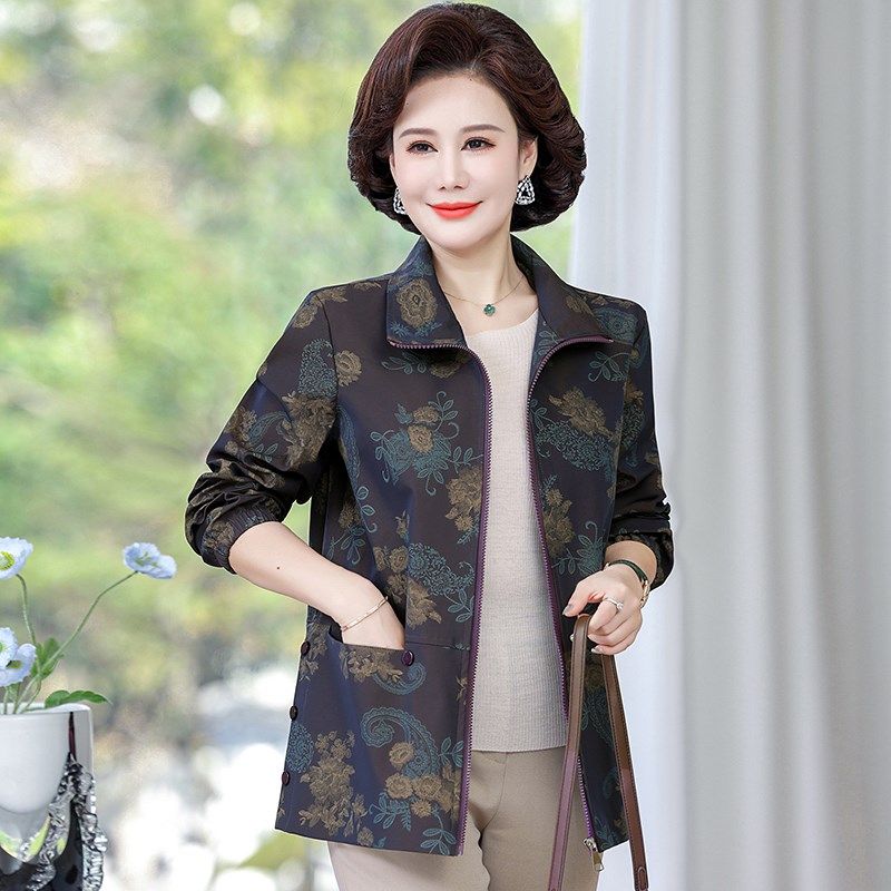 中年女装夹克女式外套2024春秋新款中老年妈妈西装女春装风衣上衣