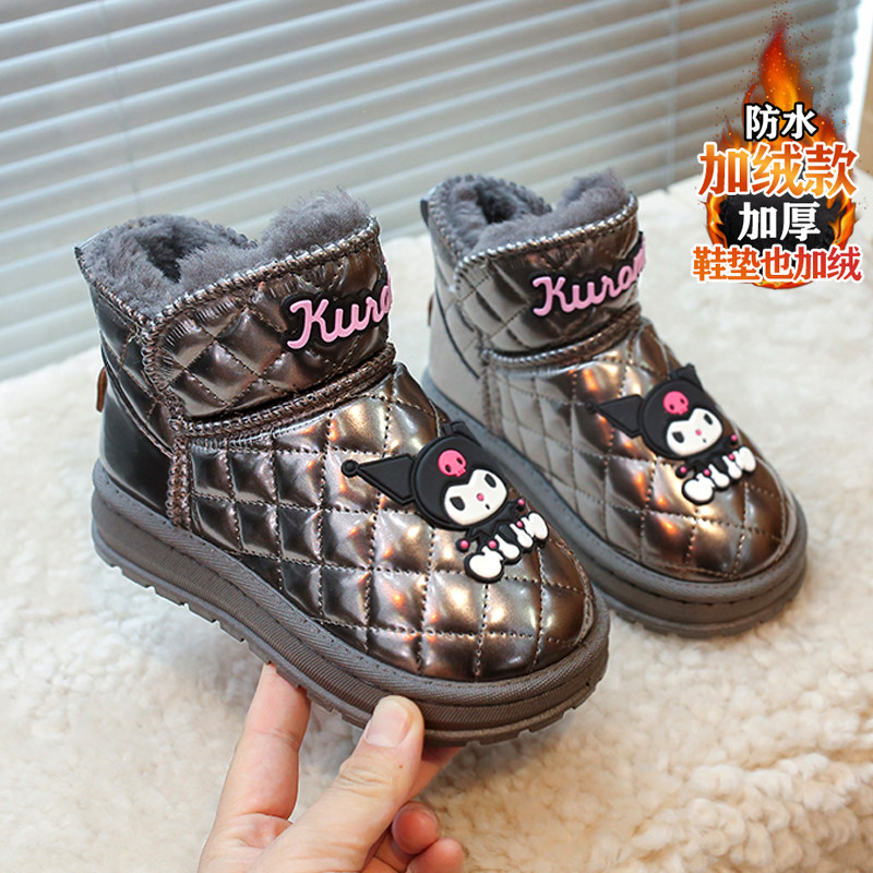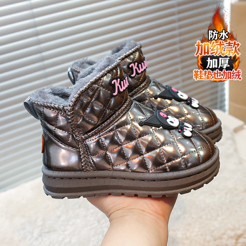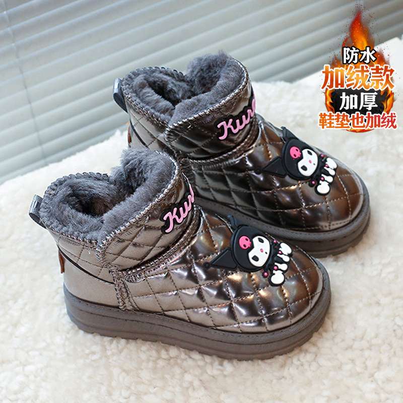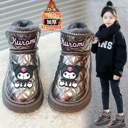 儿童雪地靴女童冬款皮毛一体棉鞋女孩库洛米防水加绒保暖大棉短靴