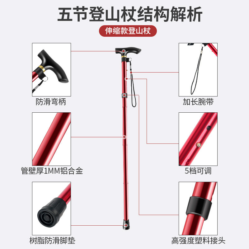 户外装备旅游用品登山杖拐杖手杖拐棍超轻铝合金五节伸缩老人拐杖