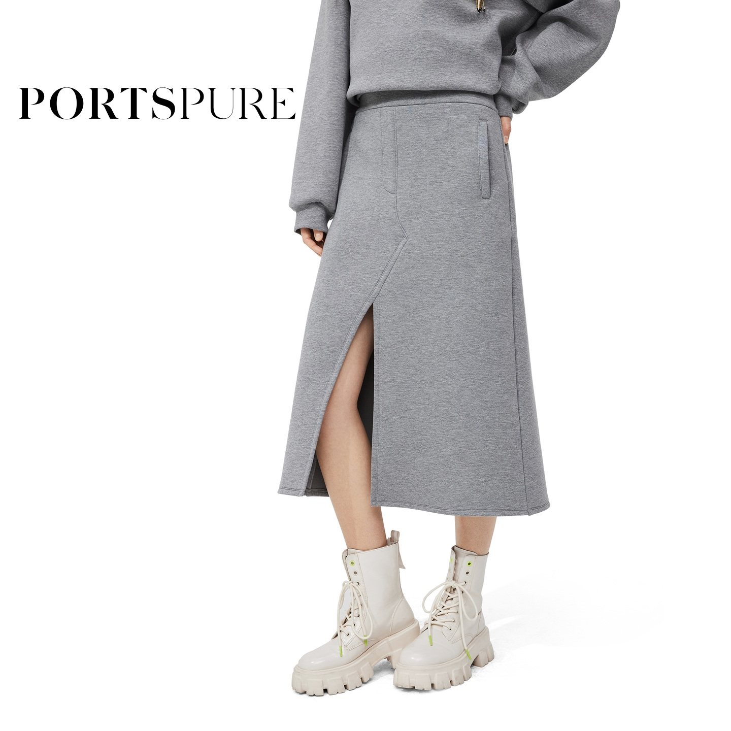 宝姿PORTSPURE女装格雷系高智优雅不规则开衩半身中长裙