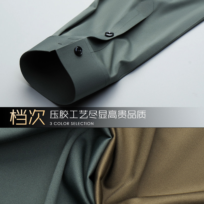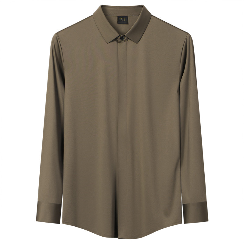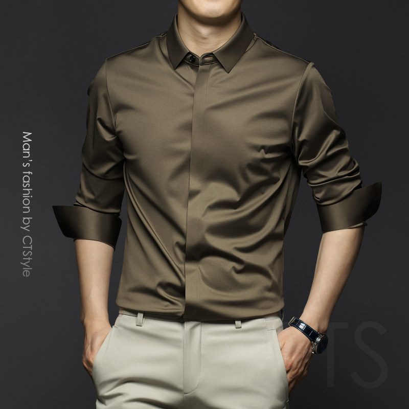 春秋季男士丝光棉长袖衬衫冰丝修身免烫衬衣2023新款商务休闲男装