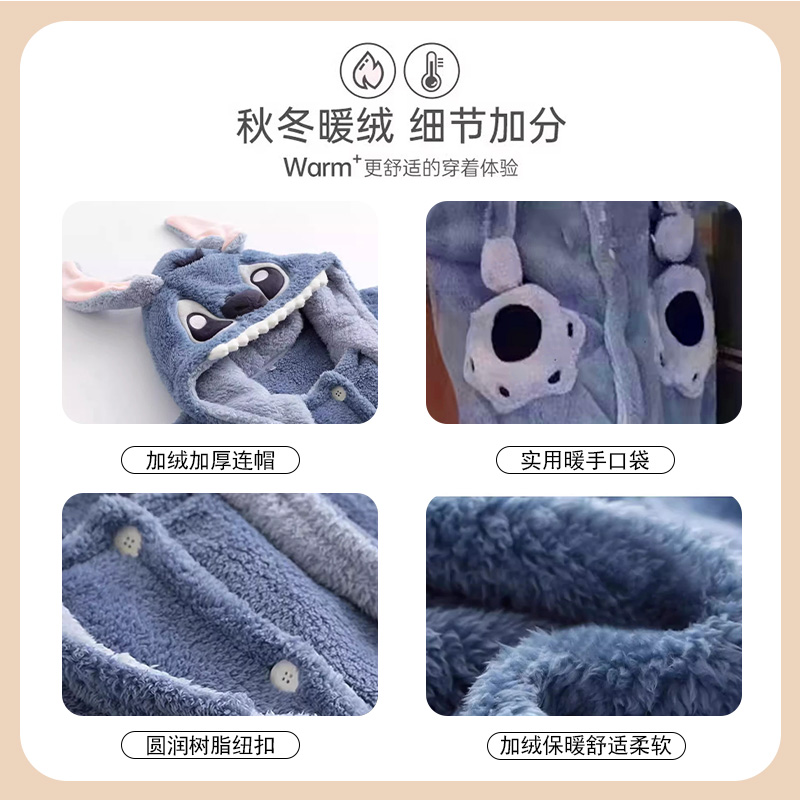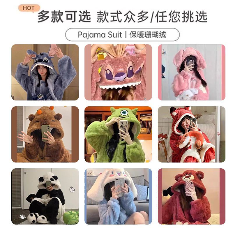珊瑚绒睡衣女秋冬季加绒加厚连帽睡袍五层加绒可爱浴袍家居服冬天