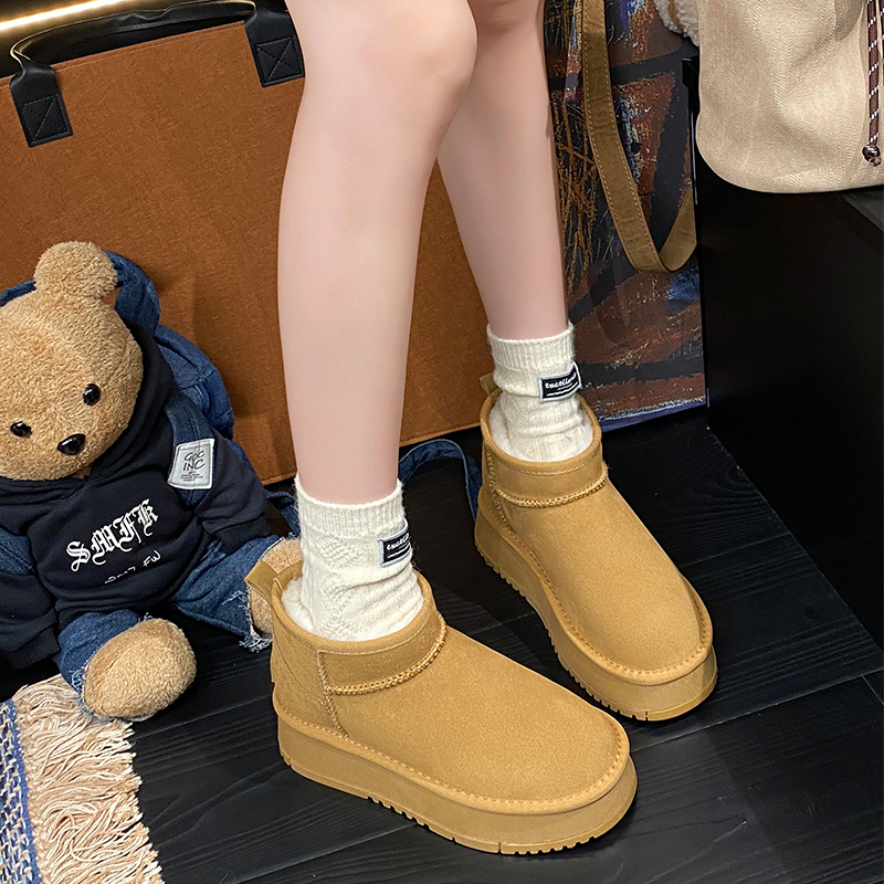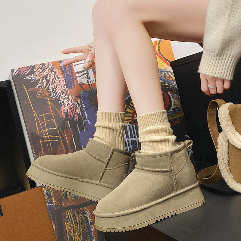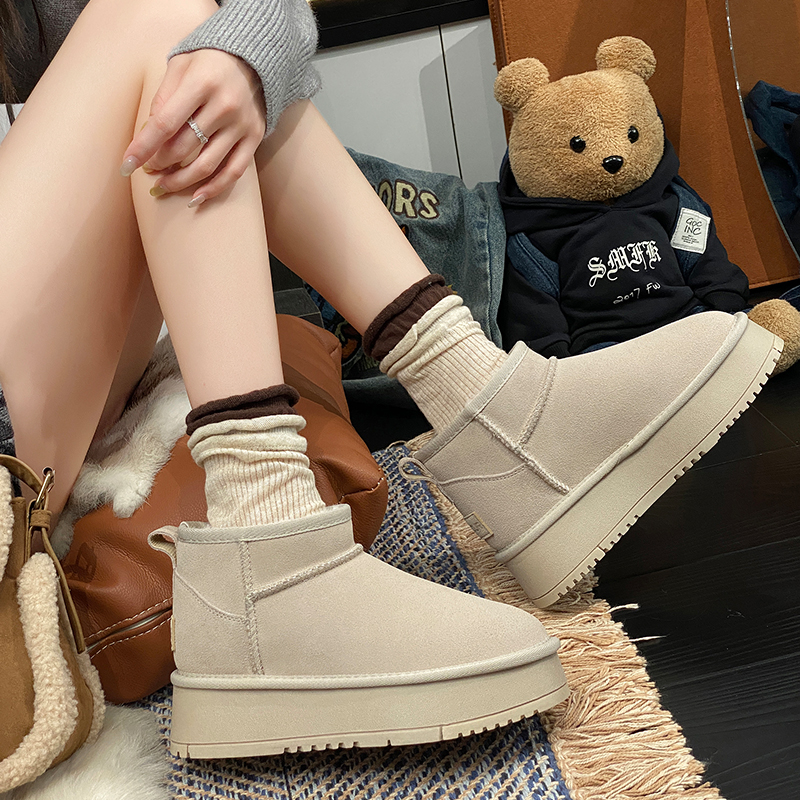 厚底内增高雪地靴女2025新款冬季加绒加厚防水短筒户外保暖棉鞋子