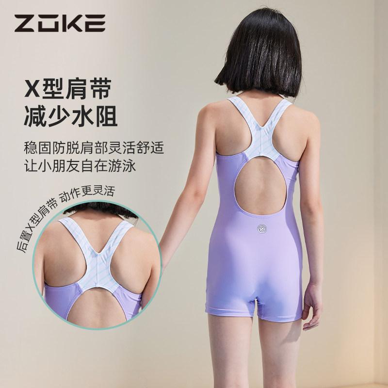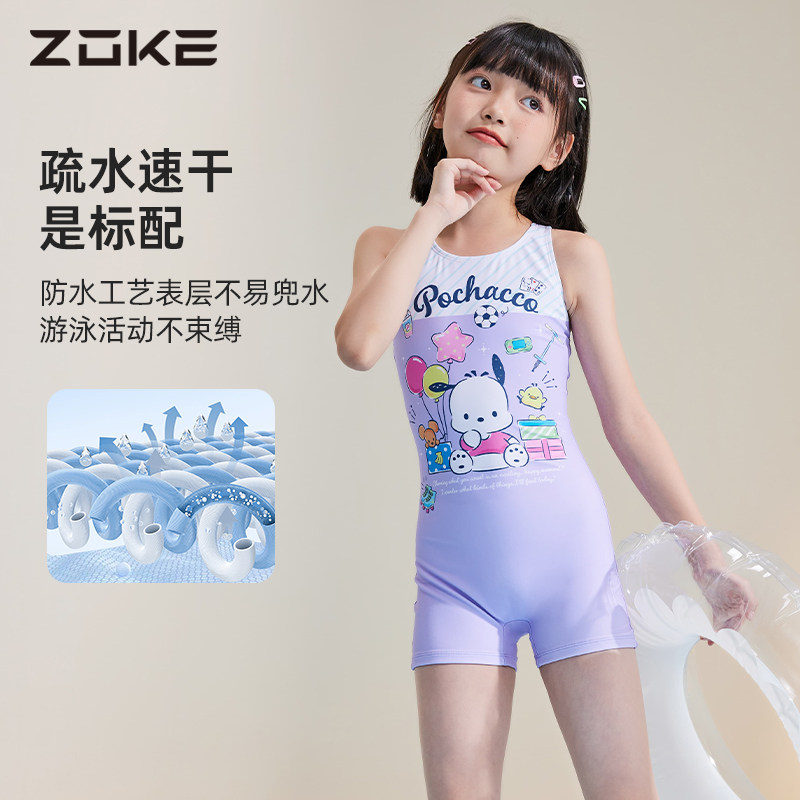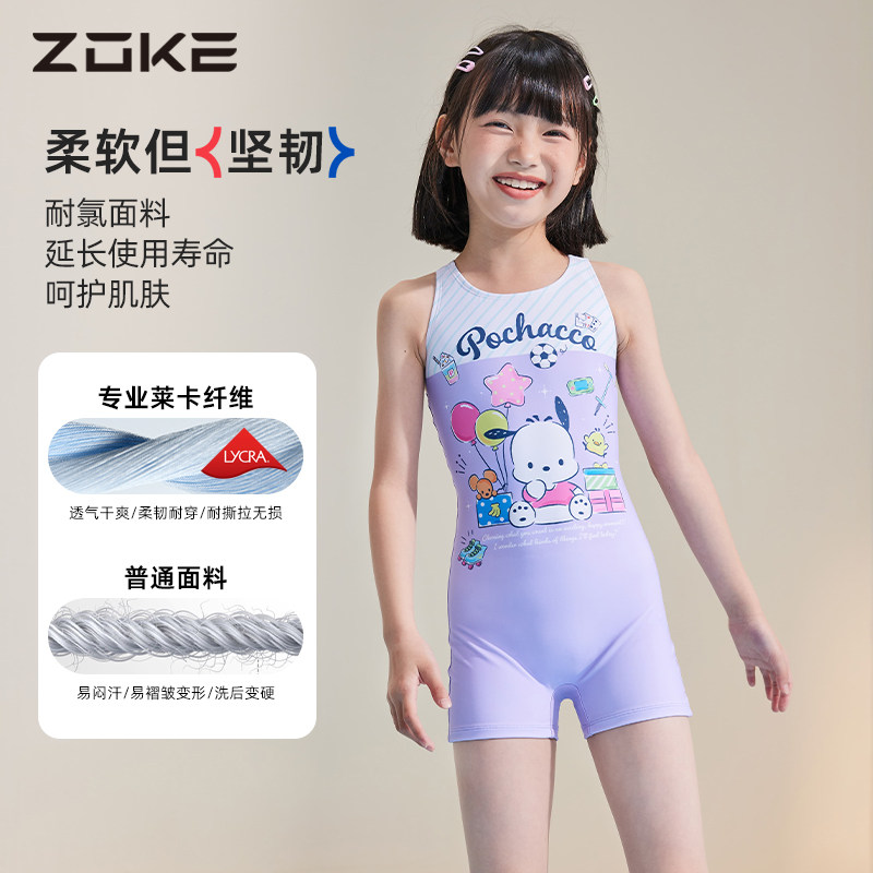 zoke洲克儿童泳衣连体平角2025新款专业训练帕恰狗女孩女童游泳衣