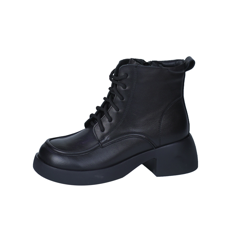 2025秋冬新款真皮粗跟马丁靴女复古时尚纯牛皮短靴加绒保暖厚底靴