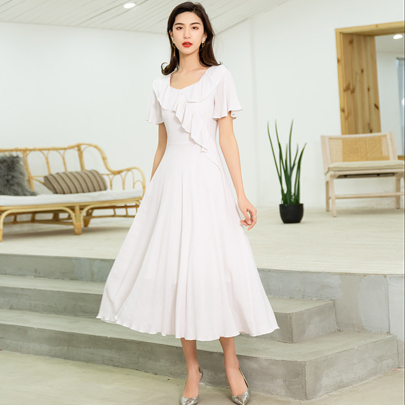 夏季新款原创苎麻白色棉麻女长款连衣裙忘城文艺度假时尚休闲长裙