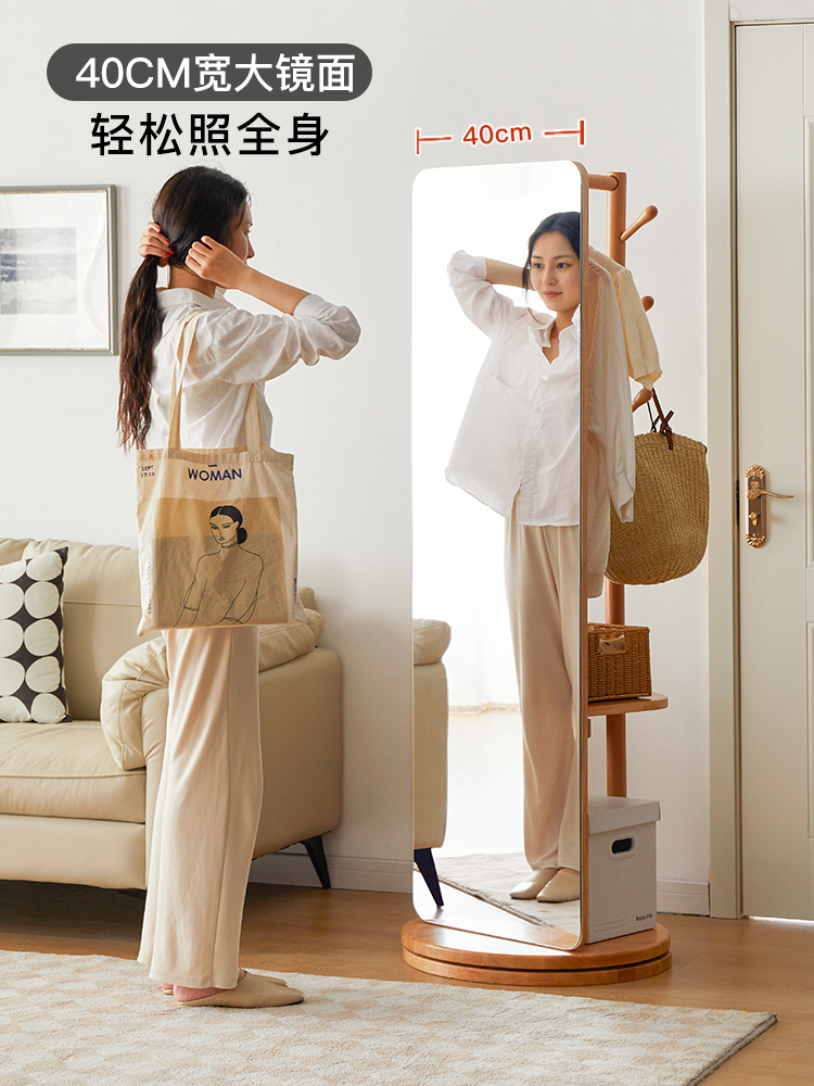 可旋转实木穿衣镜挂衣架衣帽架一体试衣镜卧室落地全身镜家用镜子