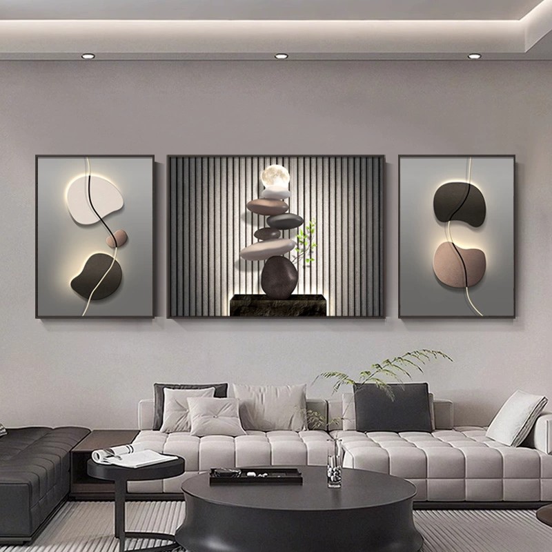 现代轻奢客厅装饰画高级感石来运转沙发背景墙面挂画抽象三联壁画