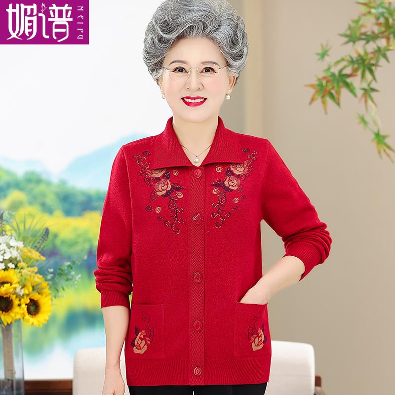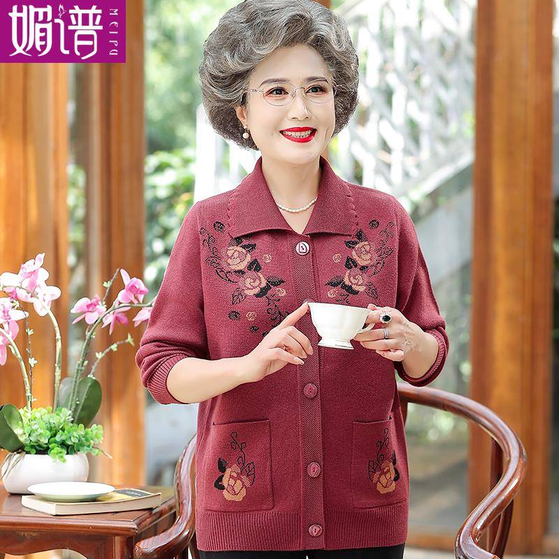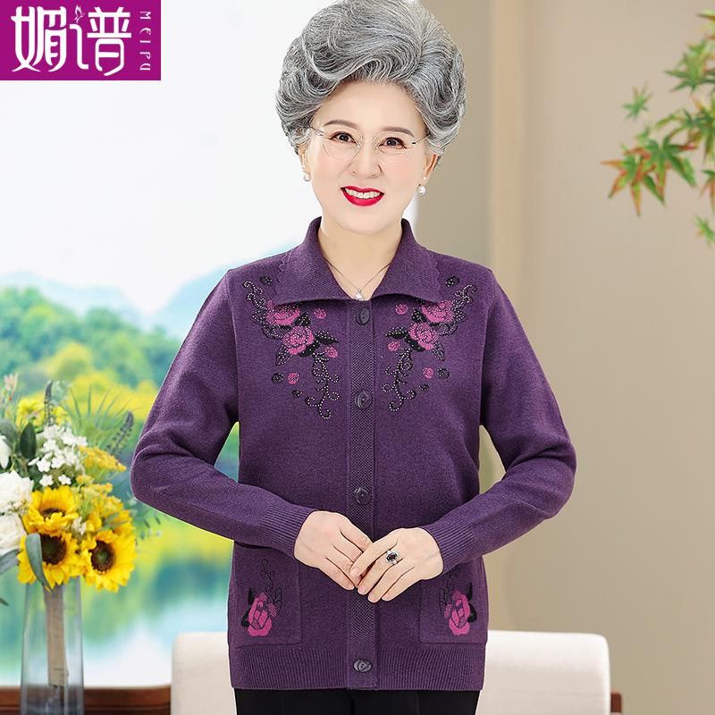 中老年人秋装女加绒针织外套妈妈毛衣开衫60岁70老太太奶奶上衣服