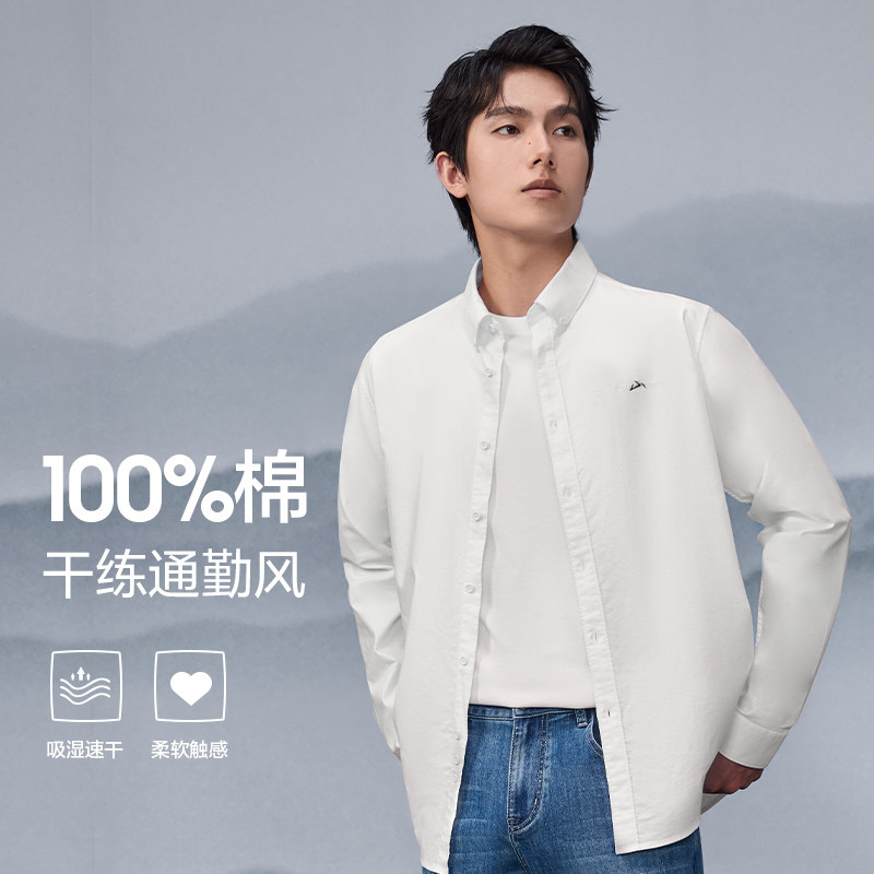 【秀场同款】海澜之家山不在高牛津纺长袖休闲白衬衫25春新大码男