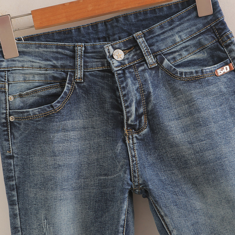 牛仔裤女中腰2025新款韩版弹力紧身显瘦小脚长裤春秋蓝色牛仔裤潮