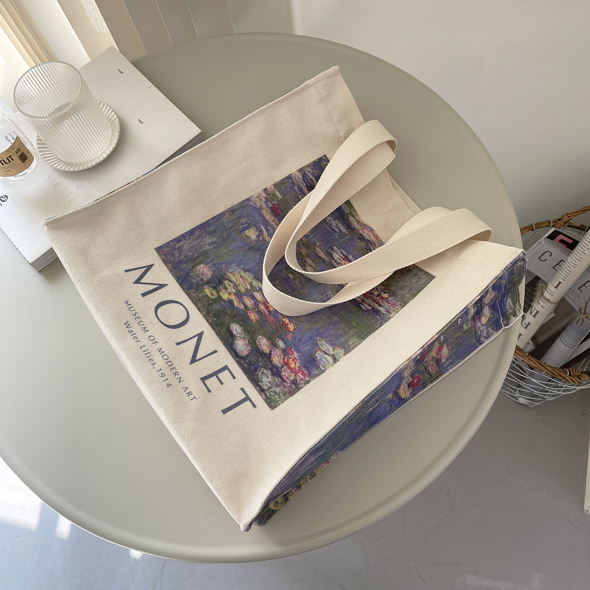 莫奈睡莲油画帆布包复古购物袋大容量收纳包学生书包电脑托特包