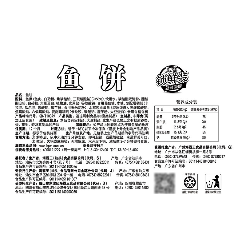 海霸王锁鲜装鱼饼海鲜丸子200g火锅丸子烧烤食材