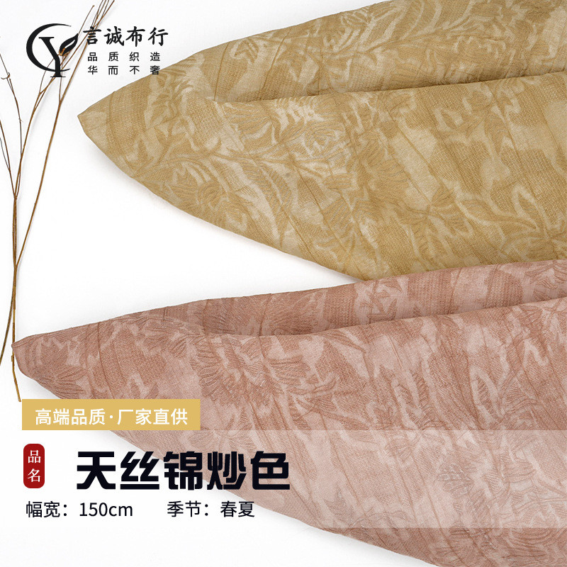 天丝锦纶扎染天丝锦纶提花布料天丝亚麻色炒中国风新中式面料