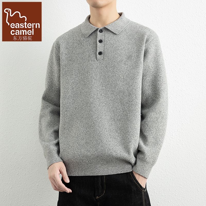 翻领衬衫领重磅套头毛衣宽松休闲针织加厚毛线衣2025冬季男士