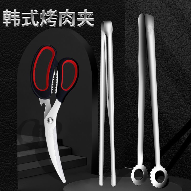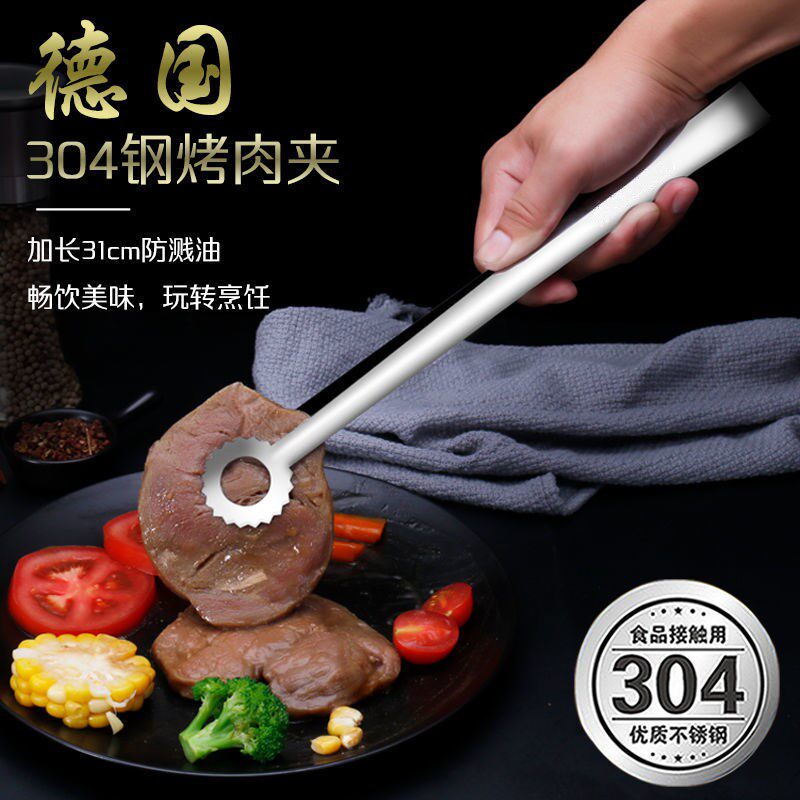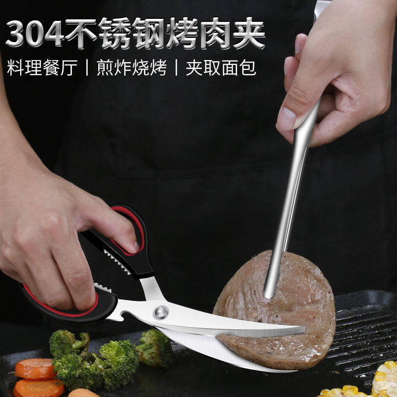 烤肉304不锈钢烧烤夹韩式夹剪刀食品夹家用烤牛排夹子烧烤用具