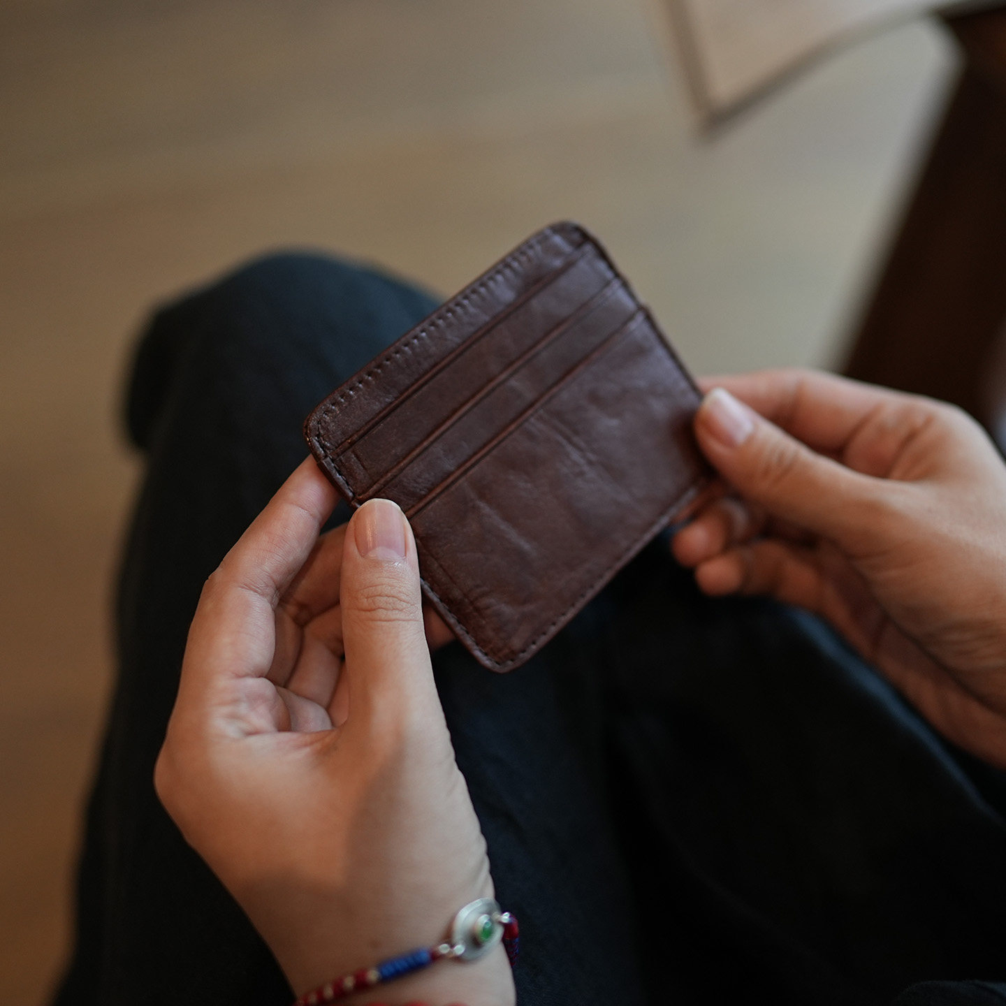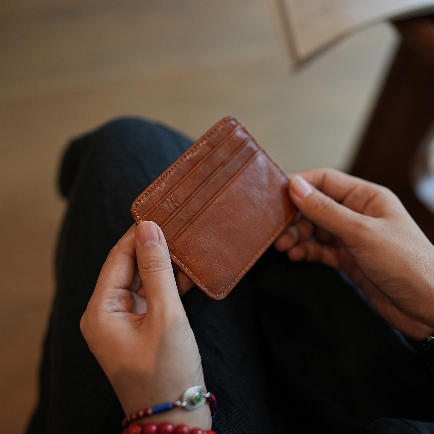 鹿小姐简约复古头层牛皮小巧轻薄多卡位真皮银行卡收纳包卡夹