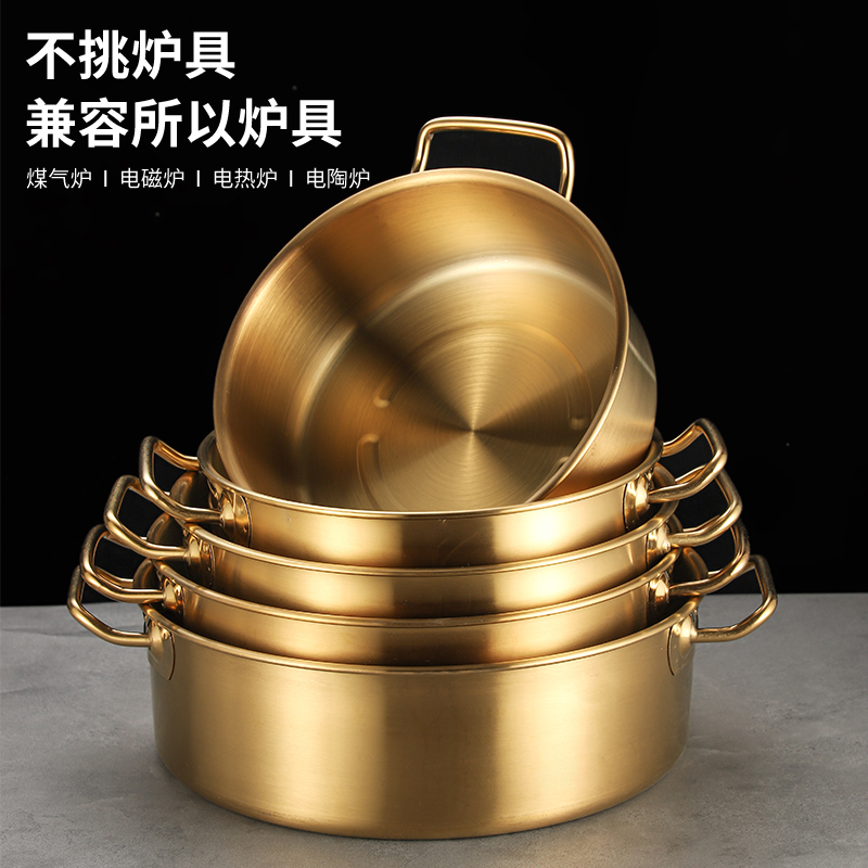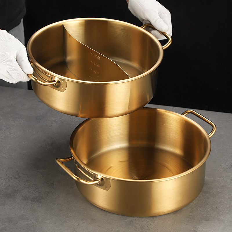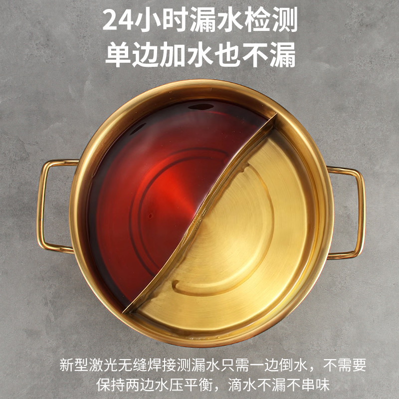 金色鸳鸯锅商用不锈钢火锅盆电磁炉专用涮锅汤锅双耳大容量火锅锅
