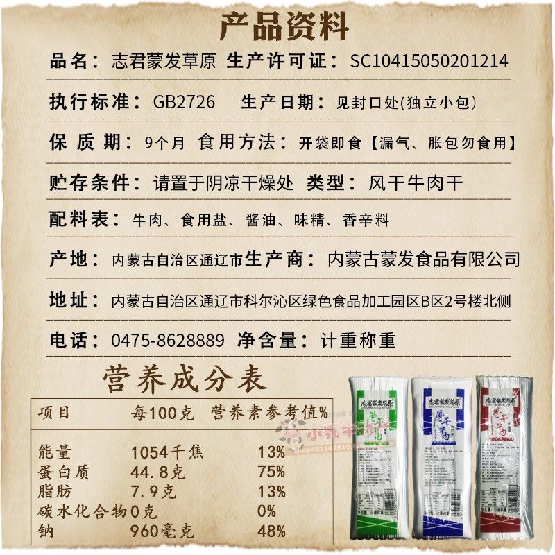志君蒙发草原科尔沁风干牛肉干真空零食手撕牛肉条健身原味美食