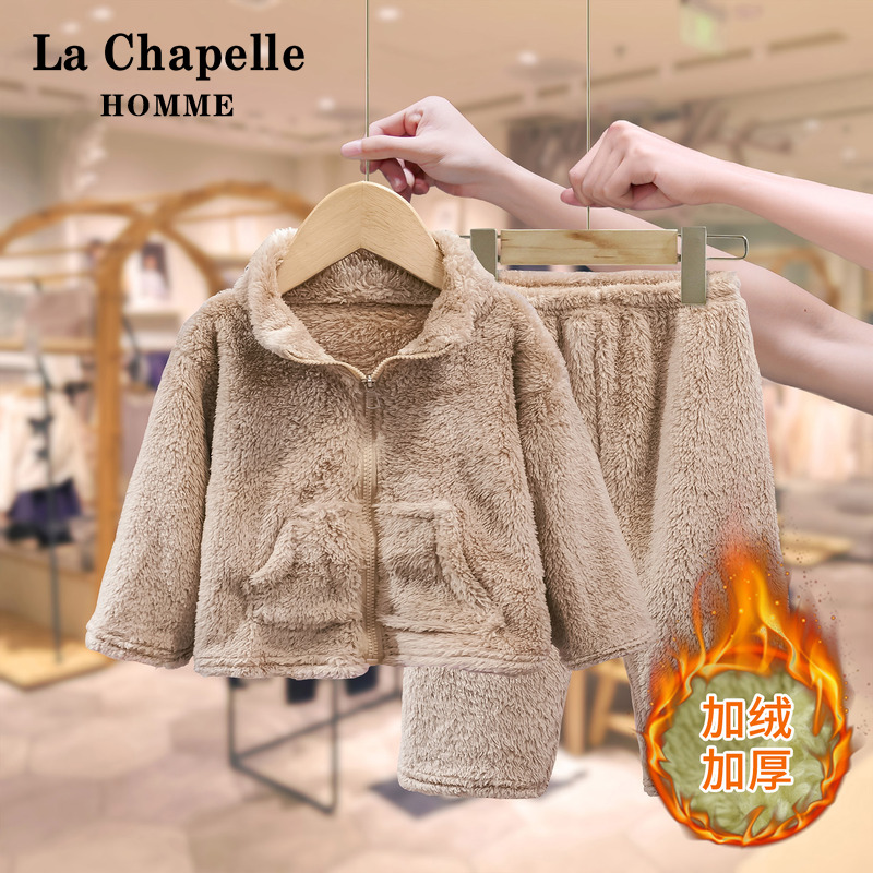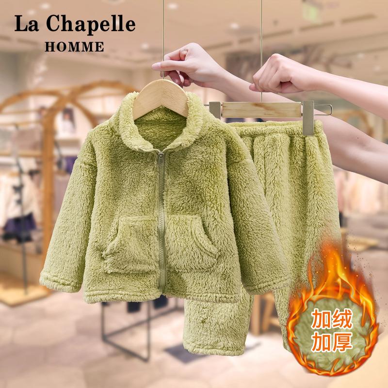 拉夏贝尔儿童家居服套装秋冬装2025新款男女童宝宝珊瑚绒保暖睡衣
