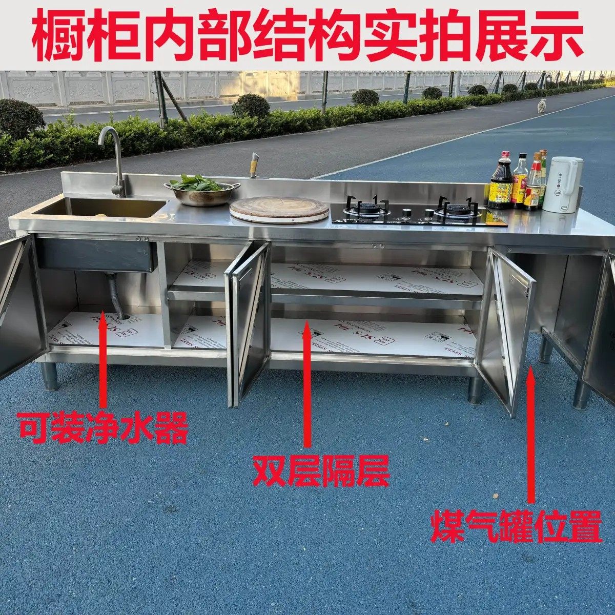 厨房不锈钢304台面工作台灶台操作储物水池水槽一体橱柜家用商用