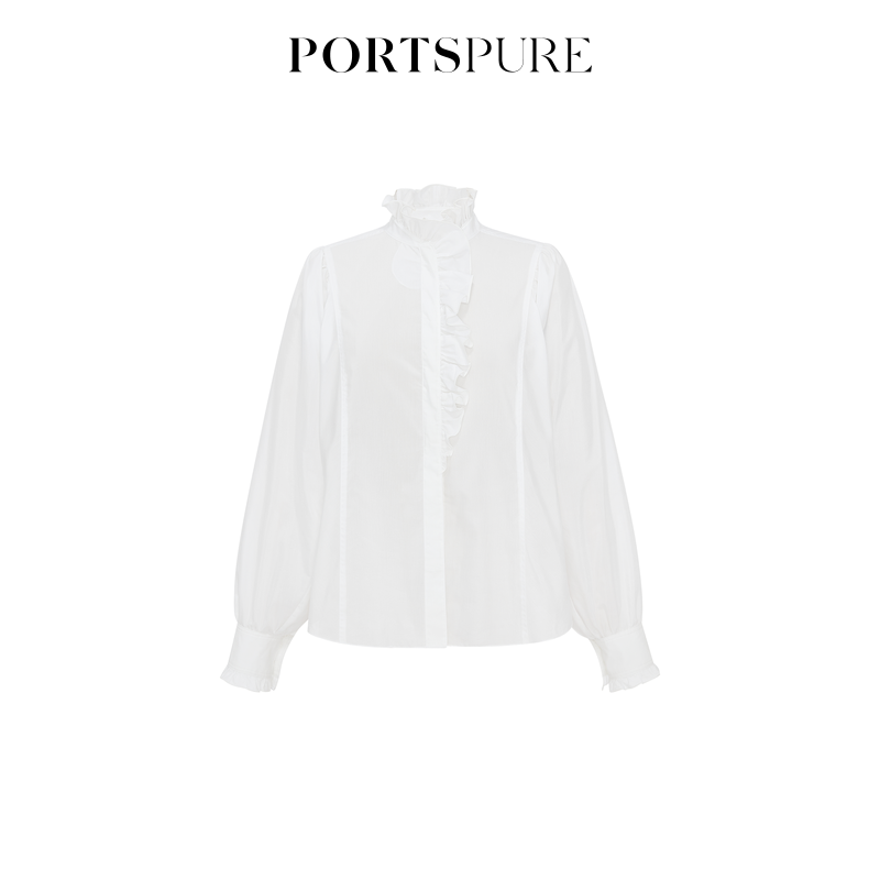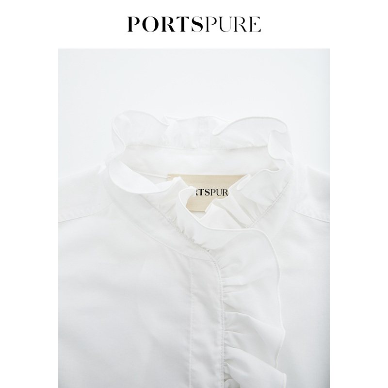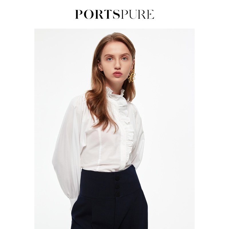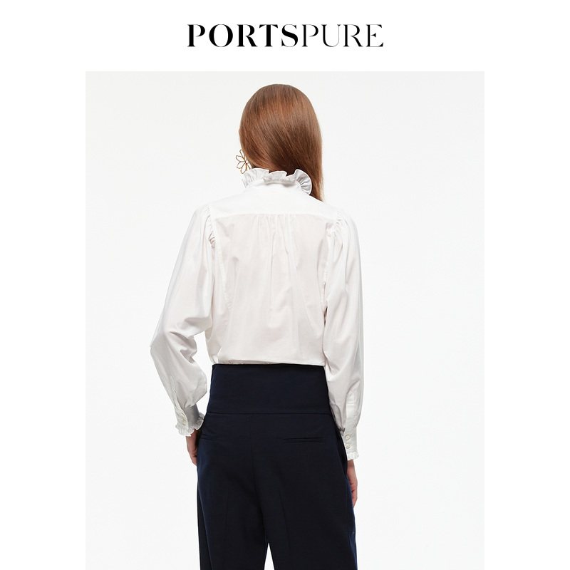 【博主同款】宝姿PORTSPURE女装荷叶花边立领气质优雅通勤白衬衫