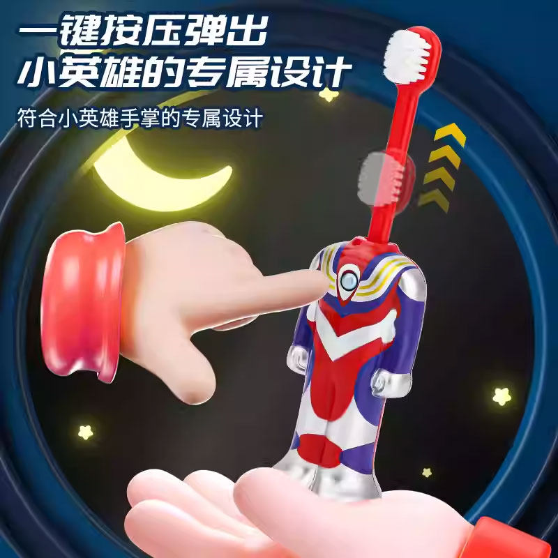 儿童牙刷奥特曼2-3-4到6岁以上宝宝专用幼儿小刷头弹跳可伸缩软毛
