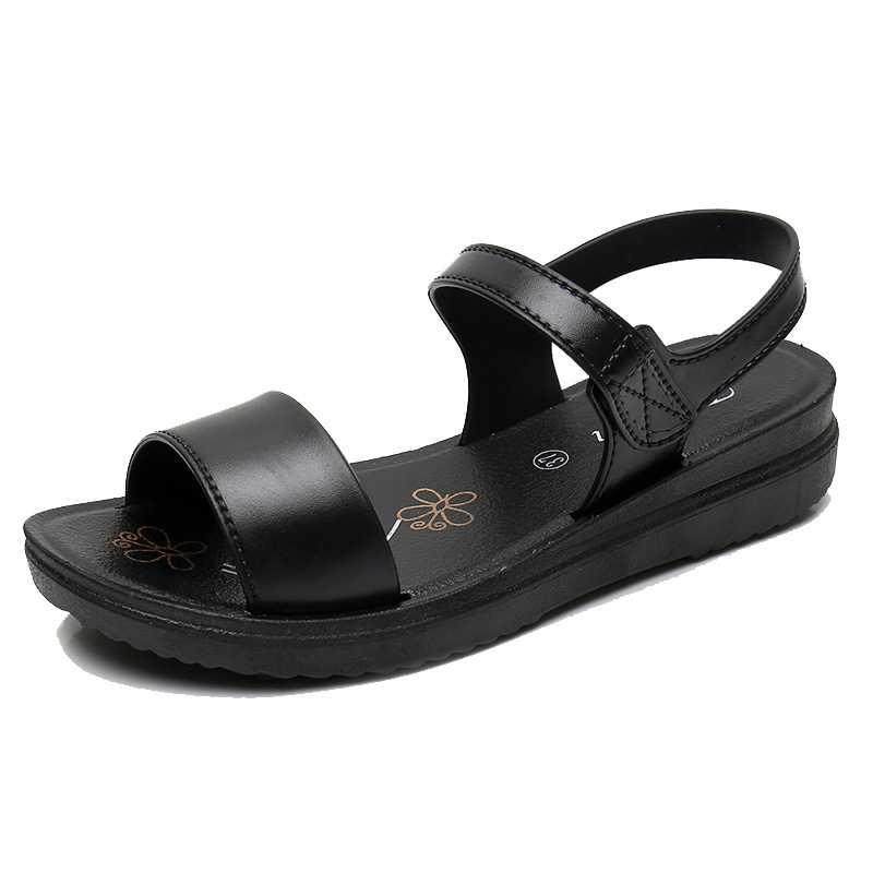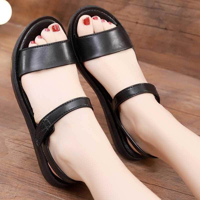 外穿中年妈妈凉鞋夏季软底平底舒适中老年老人奶奶女士防滑凉拖鞋
