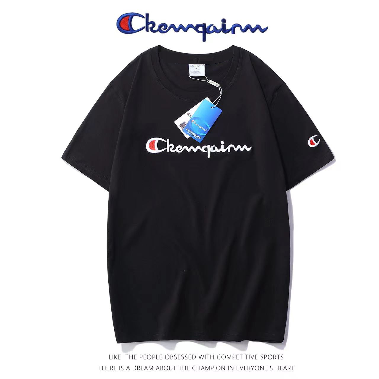 100%纯棉T恤半袖刺绣短袖夏季宽松男女同款情侣大码圆领学生打底