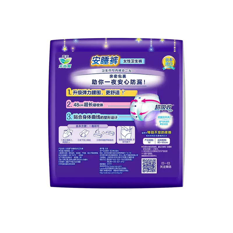 花王乐而雅进口安睡裤晚安裤卫生巾M码女裤型姨妈巾夜用安全裤