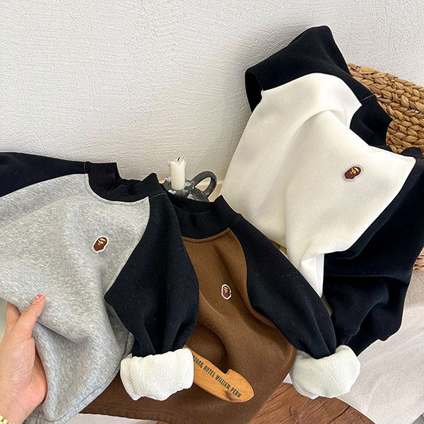 儿童加绒打底衫男冬季新款小童内搭上衣加厚宝宝撞色T恤女一体绒