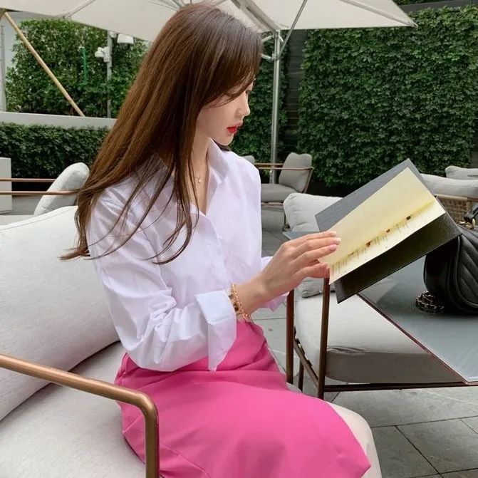 春秋新款粉色长袖衬衫女