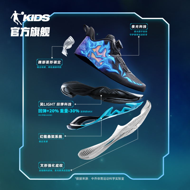 商场同款乔丹幻能斗士6男童篮球鞋夜光秋冬新款旋钮扣儿童运动鞋
