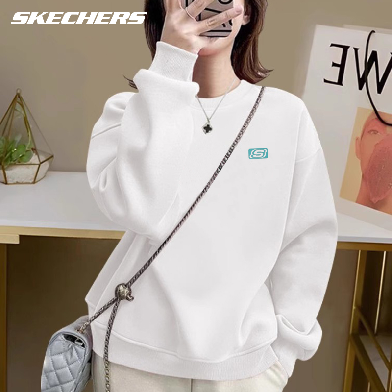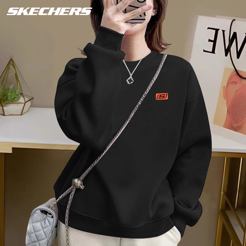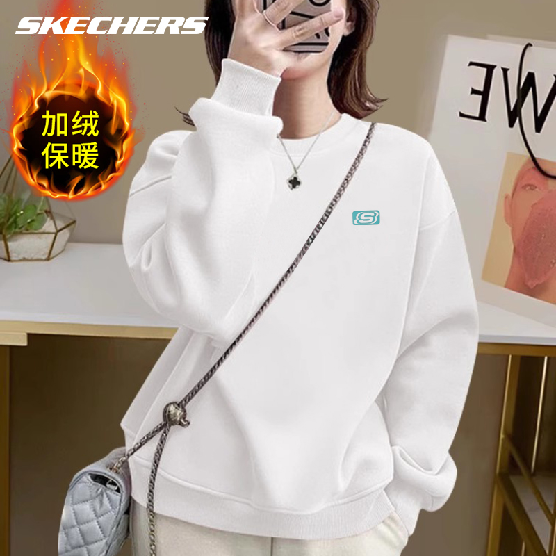 斯凯奇卫衣女款2025新款爆款高级感洋气秋冬加绒灰色品牌运动上衣