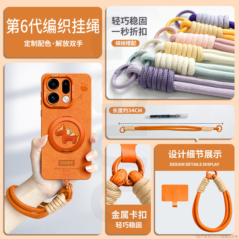 马上发财适用findx9手机壳x9pro新款x9套find斜挎可背链腕带findx8挂件绳ultra女pro硅胶oppo年findx7橙色外p