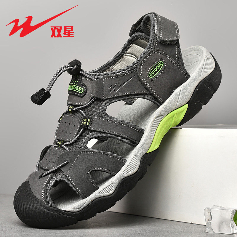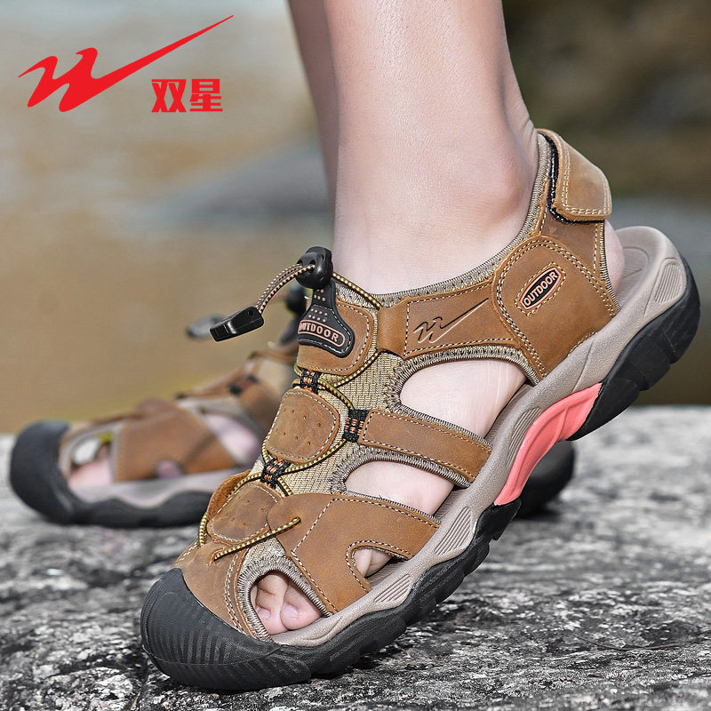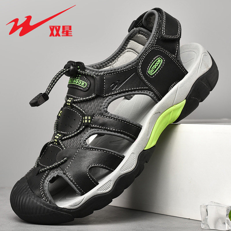 双星凉鞋男夏季新款户外运动包头沙滩鞋休闲防臭真皮镂空洞洞鞋子